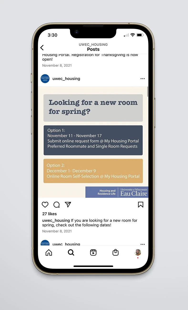 As a graphic designer at the Housing Department of University of Wisconsin Eau Claire, I designed and illustrated the materials for the department itself. I also completed any requests from resident assistants and on-campus clubs. A majority of the work was social media posts, posters, and TV displays. Occasionally I would get to create a T-shirt design, which was always my favorite.